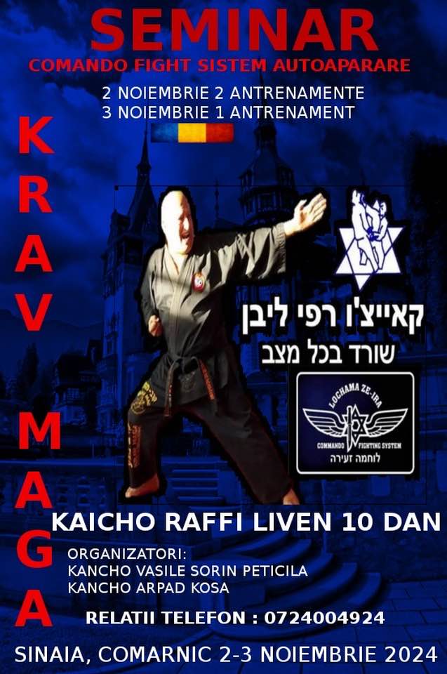 One of the world’s most prominent martial arts masters, Raffi Liven, is coming to Romania to conduct a full-contact and self-defense seminar in Comarnic on the weekend of November 2-3. Known globally for his contributions to martial arts, this exceptional event is organized by Kaicho Sorin Peticilă and Kaicho Arpad Kosa, holders of the prestigious 7th dan black belts in Karate – IKA, awarded by Kaicho Takemasa Okuyama. Peticilă and Kosa have also achieved 10th dan in Krav Maga LI and Karate All Style, distinctions personally conferred by Raffi Liven himself. This seminar offers martial arts practitioners in Romania a rare opportunity to learn directly from one of the most respected living masters.